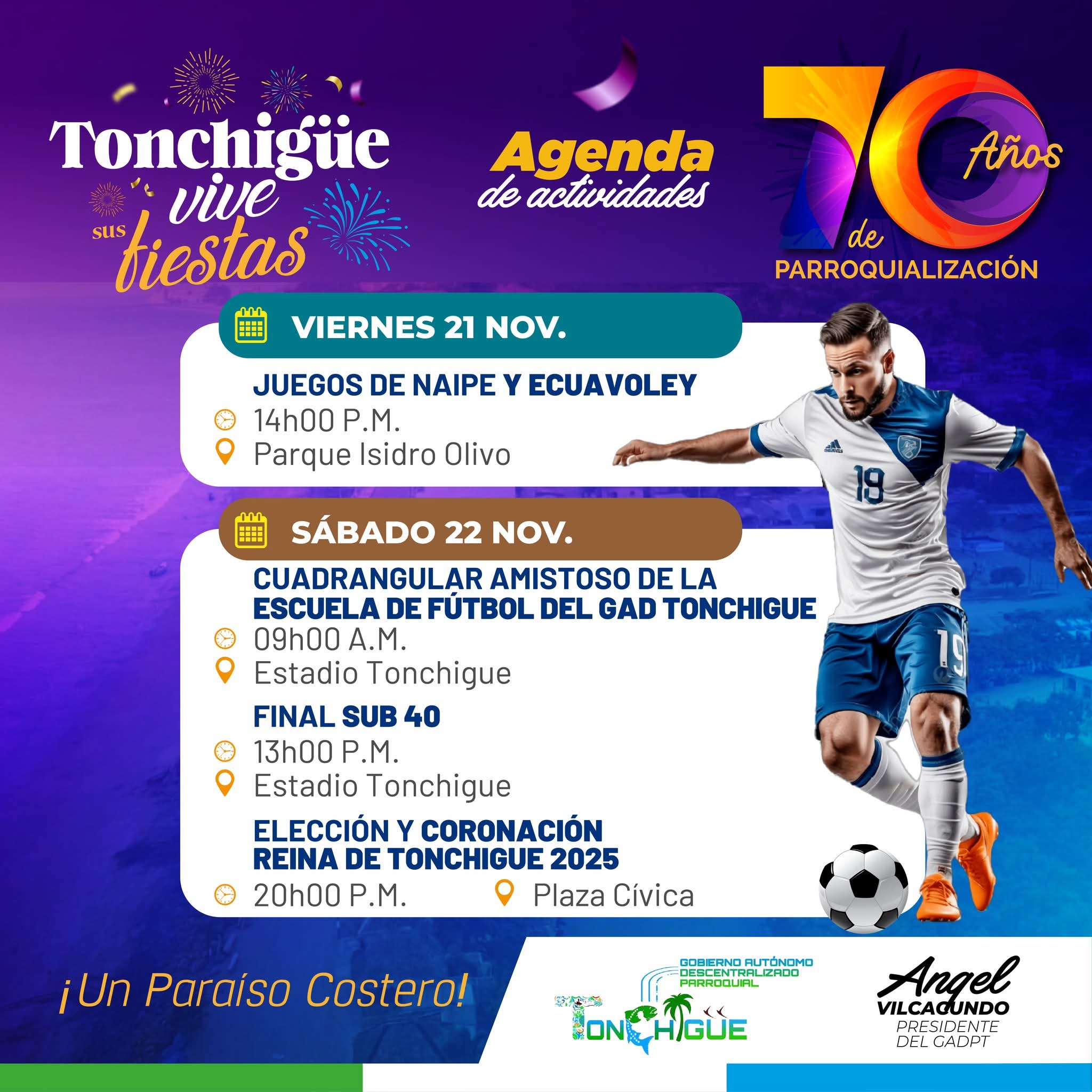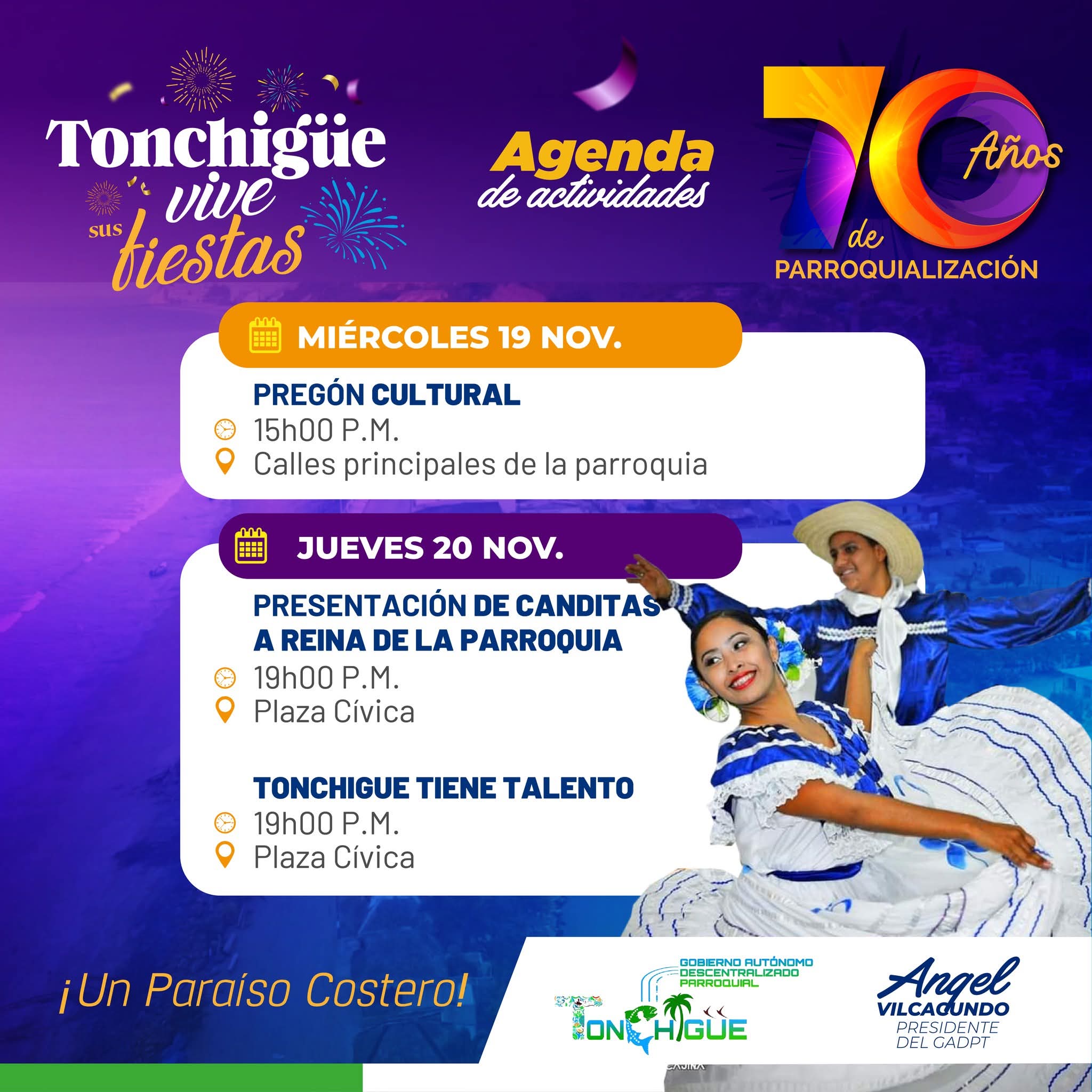 CRONOGRAMA DE ACTIVIDADES A CELEBRAR LOS 70 AÑOS DE PARROQUIALIZACION