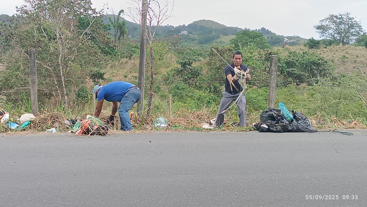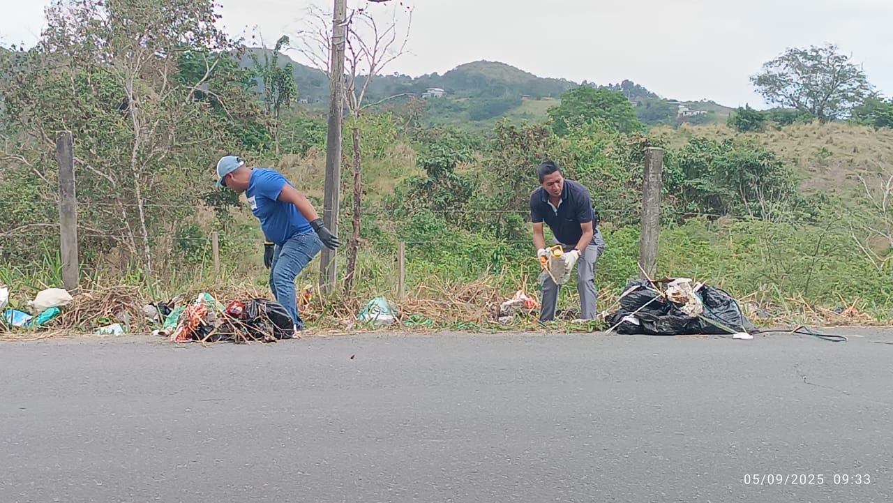 Está minga de limpieza se la realizó luego de que personas desprensivas dejaran desechos sólidos en la via, mostrando una mala imagen a propios y extraños que ingresan y salen a nuestra parroquia.