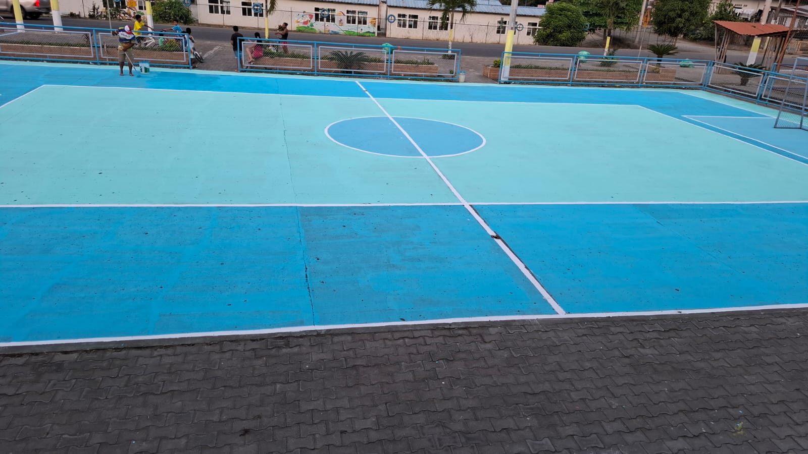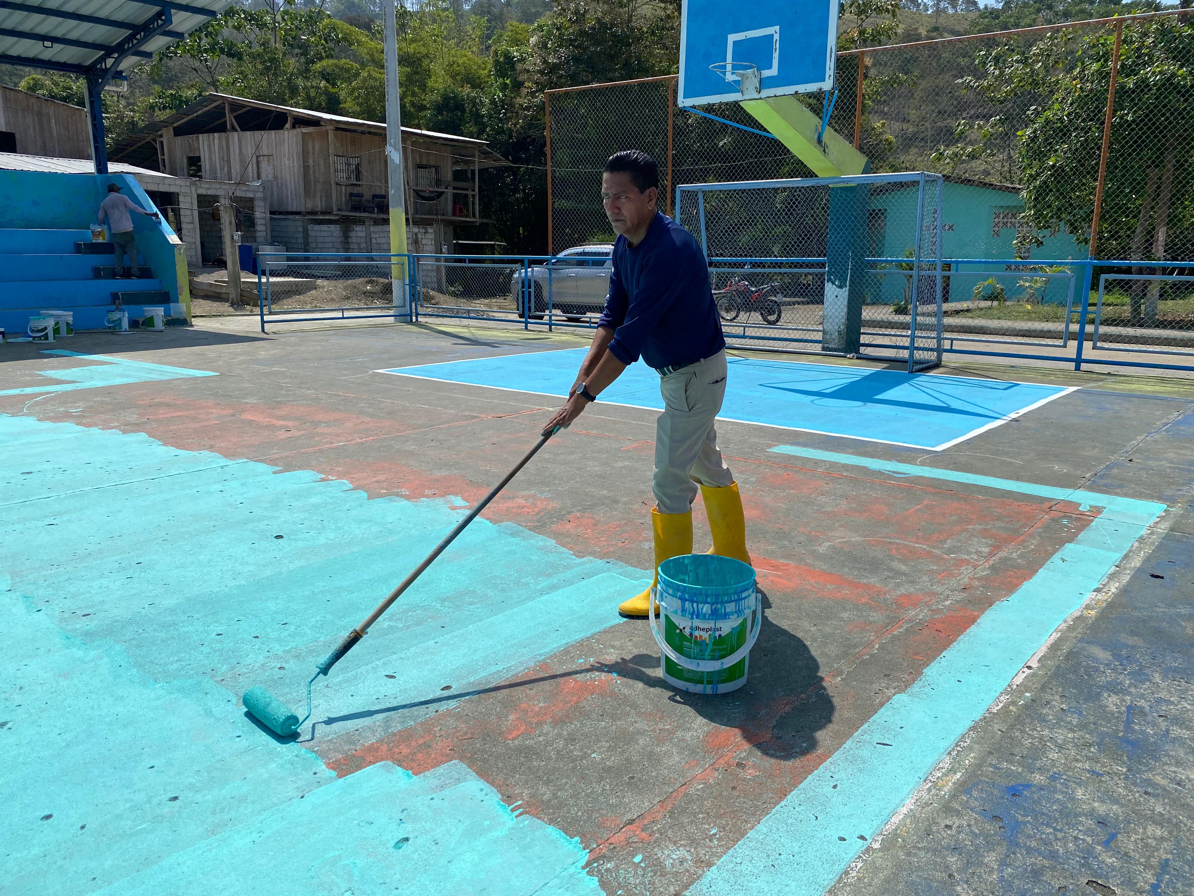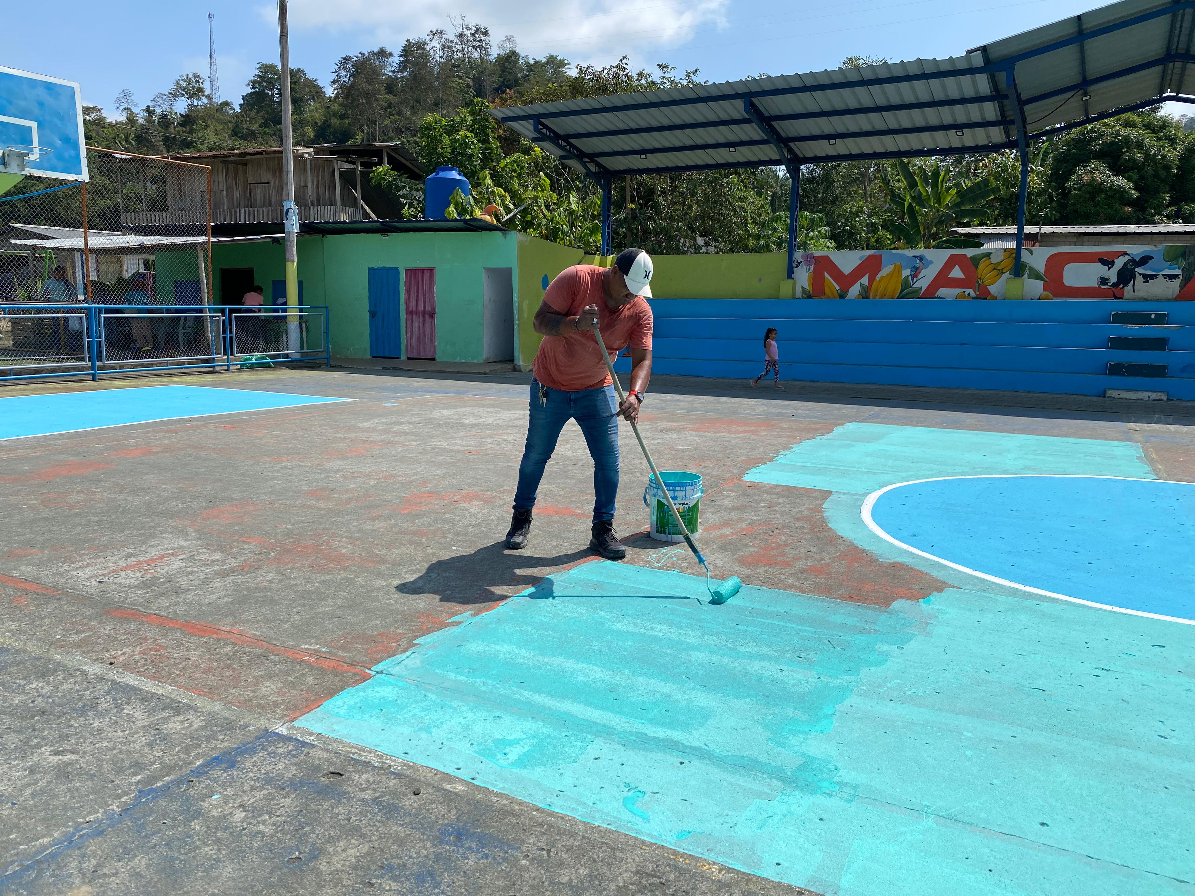 #TrabajoEnTerritorio || El presidente del Gobierno Parroquial de Tonchigue Angel Vilcacundo junto al vocal Dario Vera y moradores del recinto Macara realizaron el mantenimiento y pintado de la cancha de voley boll, esto por motivo de las festividades de la comunidad (FHR).